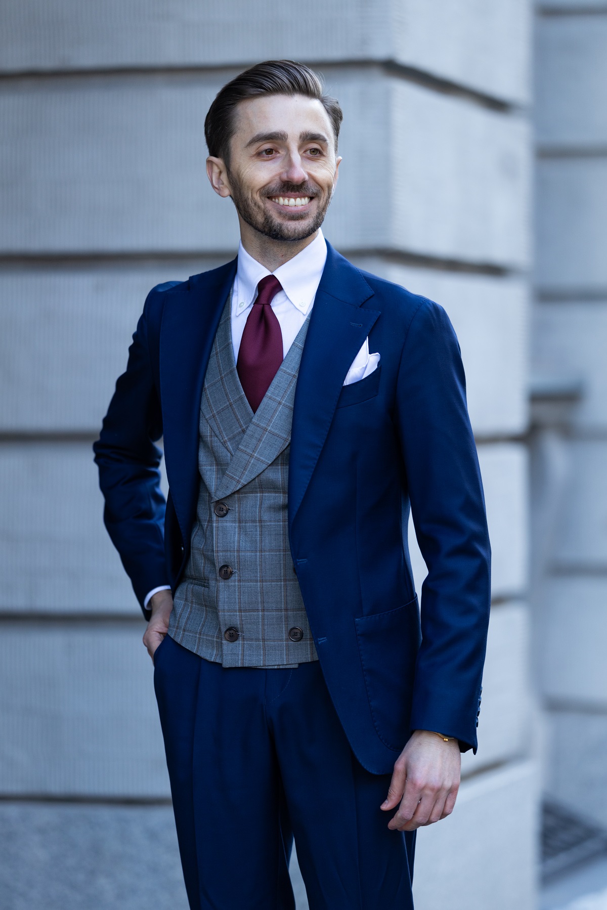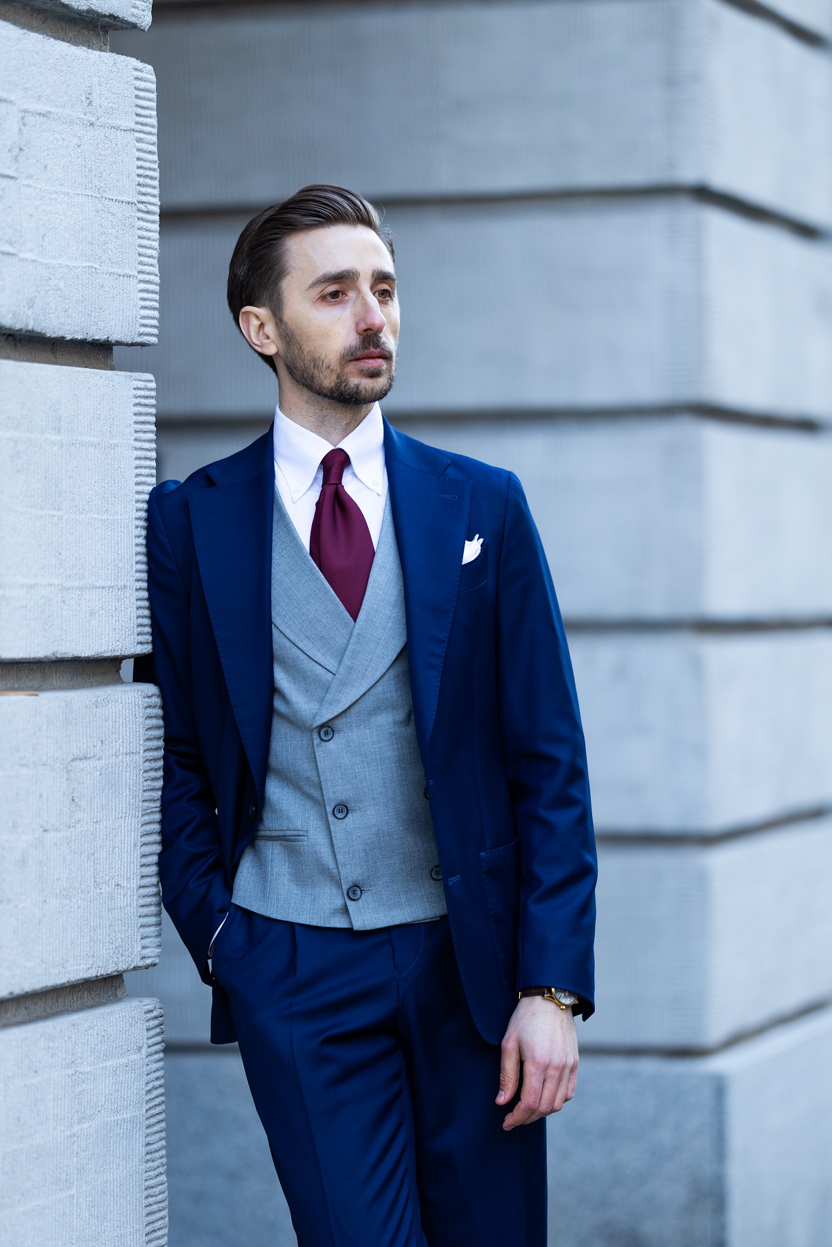 Utarło się że kamizelka do granatowego garnituru powinna być w kolorze szarym bądź powinna być wykonana z tej samej tkaniny co garnitur. Otóż jest to klasyczne połączenie i sprawdzi się na wiele okazji, ale nie jest to jedyny poprawny wybór.