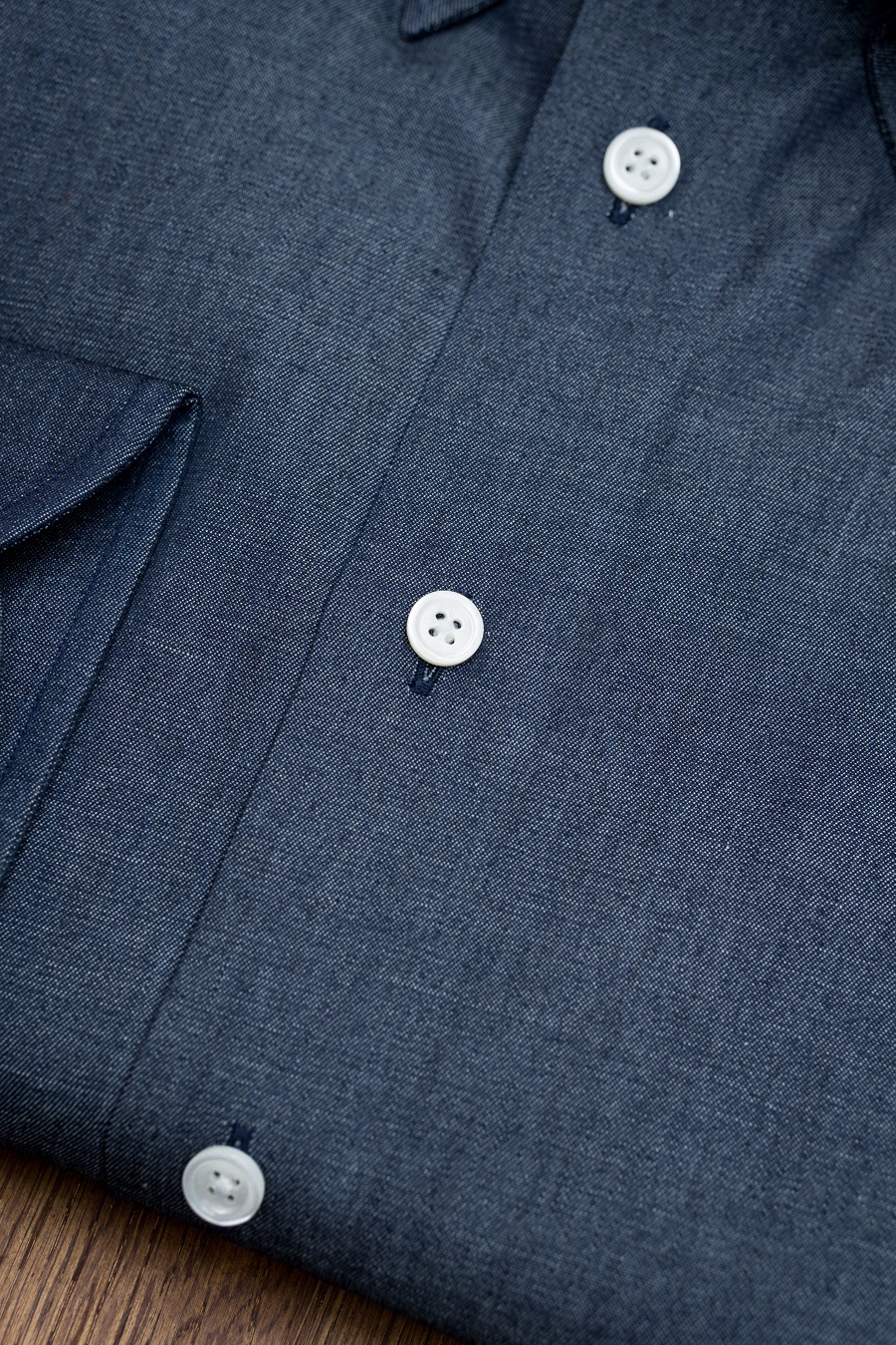 Model ten z kołnierzykiem BD wykonana z cienkiego i przewiewnego denimu to świetna alternatywa na lato i wiosna dla koszul lnianych. Wyłogi kołnierzyka mają 9 cm i tworzą piękne rolowanie.