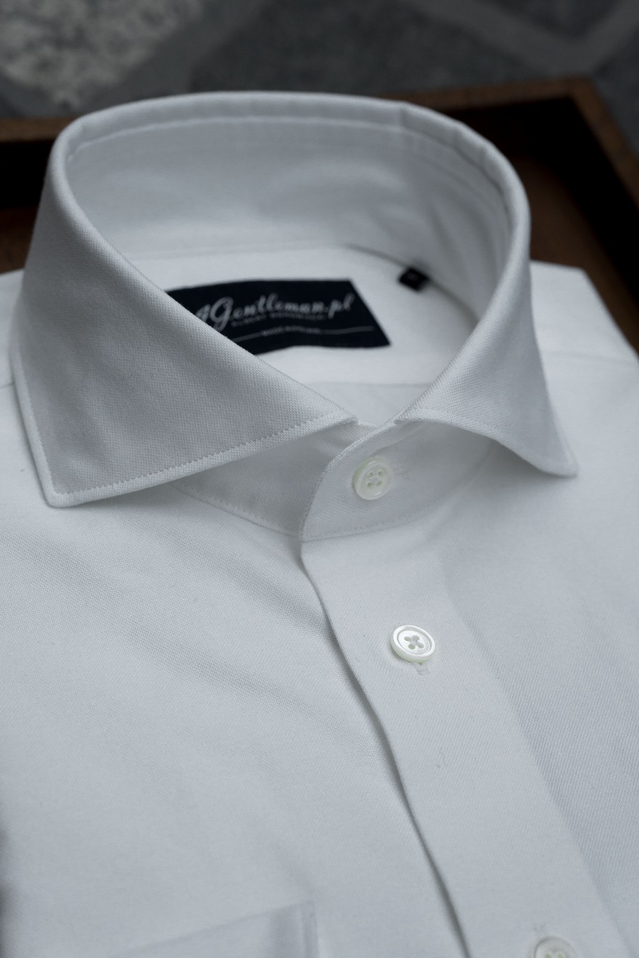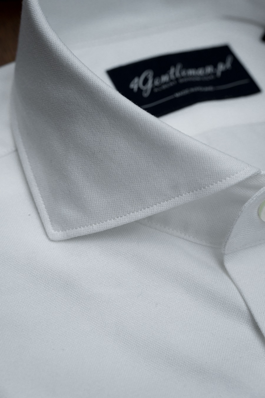Koszula biała z kołnierzykiem Cutaway jest uzupełnieniem aktualnej kolekcji koszul i z pewnością zostanie z nami na dłużej – jest to klasyk. Koszula została uszyta z bawełny typu oxford i ma dopasowany krój.