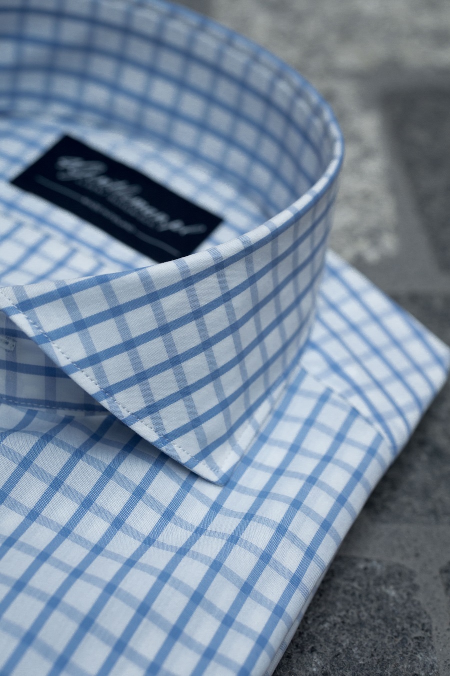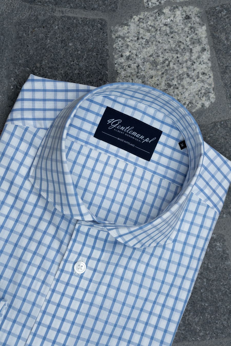 Koszule w tej kolekcji są odpowiedzią na Wasze pytania i sugestie. W pierwszym dropie znalazło się trzy modele wykonane z bawełny. Koszula w niebieską kratę to świetna alternatywa dla gładkich modeli. Można ją nosić na wiele sposobów. Zarówno w zestawach z garniturami, jak i w stylizacjach casualowych z dżinsami. Model ten został uszyty z popeliny o niskiej gramaturze. Jest to idealna koszula na lato!