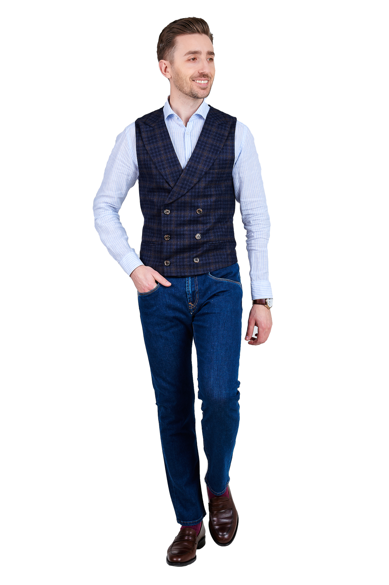 Model Mestre został stworzony z myślą o stylizacjach smart casualowych z dżinsami. Jest to idealny model do noszenia bez marynarki. Kamizelka jest w całości uszyta z materiału zasadniczego.